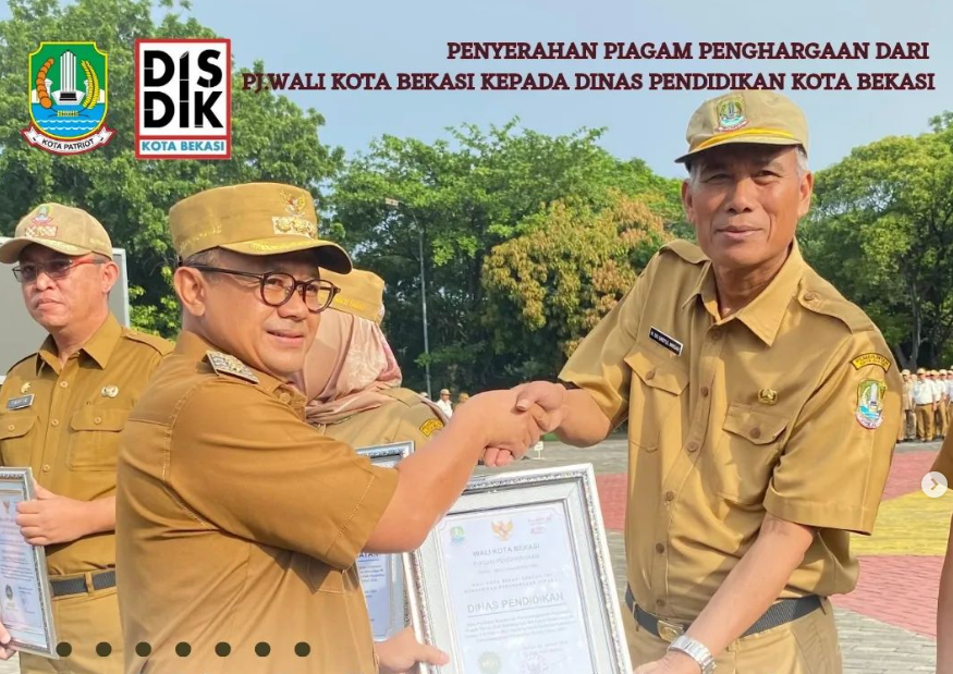 Hari Senin (08/01) Pj. Wali Kota Bekasi Raden Gani Muhamad, S.H,. M.Ap menyerahkan penghargaan Wali Kota Bekasi Kepada Kepala Dinas Pendidikan Kota Bekasi, Dr. Uu Saeful Mikdar, S.Pd, M.M atas Capaian Hasil Penilaian Kepatuhan Penyelenggaraan Pelayanan Publik oleh OMBUDSMAN RI Tahun 2023 yang diraih oleh Dinas Pendidikan.