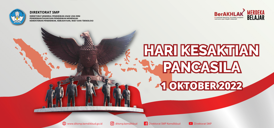 Tahukah Sobat SMP bahwa setiap tanggal 1 Oktober diperingati sebagai Hari Kesaktian Pancasila? Hal tersebut tertuang dalam Keputusan Presiden No. 153 Tahun 1967. Tahun ini peringatan Hari Kesaktian Pancasila digelar dengan mengusung tema “Bangkit Bergerak Bersama Pancasila”. Peringatan Hari Kesaktian Pancasila bertujuan untuk mempertebal dan meresapkan keyakinan akan kebenaran, keunggulan, serta kesaktian ideologi Pancasila sebagai satu-satunya pandangan hidup rakyat Indonesia.