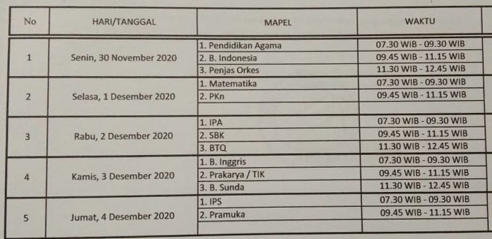 Diinformasikan kepada peserta didik dan orang tua siswa bahwa pelaksanaan Penilaian Akhir Semester Ganjil Tahun Pelajaran 2020-2021 akan dilaksanakan pada tanggal 30 Nopember s/d 4 Desember 2020. Adapun jadwal lengkap bisa dilihat di profil gambar berita ini. Akses ujian dapat dilihat melalui website sekolah dengan link berikut : http://smpn12kotabekasi.sch.id/FrontCtrl/ujian